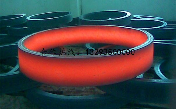 熱處理裝夾環(huán)形鍛件的熱處理,是在井式熱處理爐或 臺車式熱處理爐中進行加熱, 工件之間要用墊鐵支墊,墊鐵之間間距不能太大,每層墊鐵都應放置在同一直線上。墊鐵面積需要大一些,放置底層墊鐵面枳太小,在工件的加熱狀態(tài)下,承受上層過重的工件重量,因為墊鐵單位面積的壓強過大,而被壓人底層工件的金屬中,形成大的痕,使工件沒有加工余量而報廢。環(huán)形鍛件熱處理裝夾的原則是:保證工件加熱或冷卻均勻, 防止工件變形,裝卸方便。